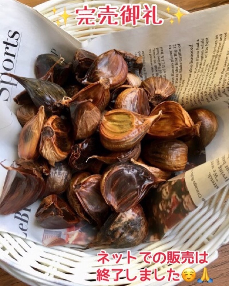おかげさまで、令和4年産の黒にんにくは、オンラインショップ、ふるさと納税、食べチョク、ポケマルさん等、オンラインでの販売を終了させていただきました。
